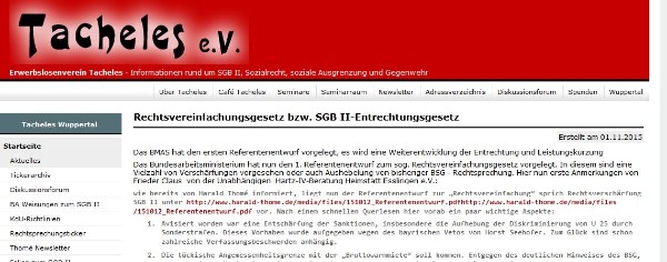 Nähere Informationen zu den Verschärfungen in Hartz-IV ab Dezember 2015 im Tacheles e.V.