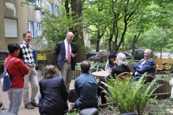 Derzeit plauderten einige Aktivisten und Gäste draußen im Innenhof.